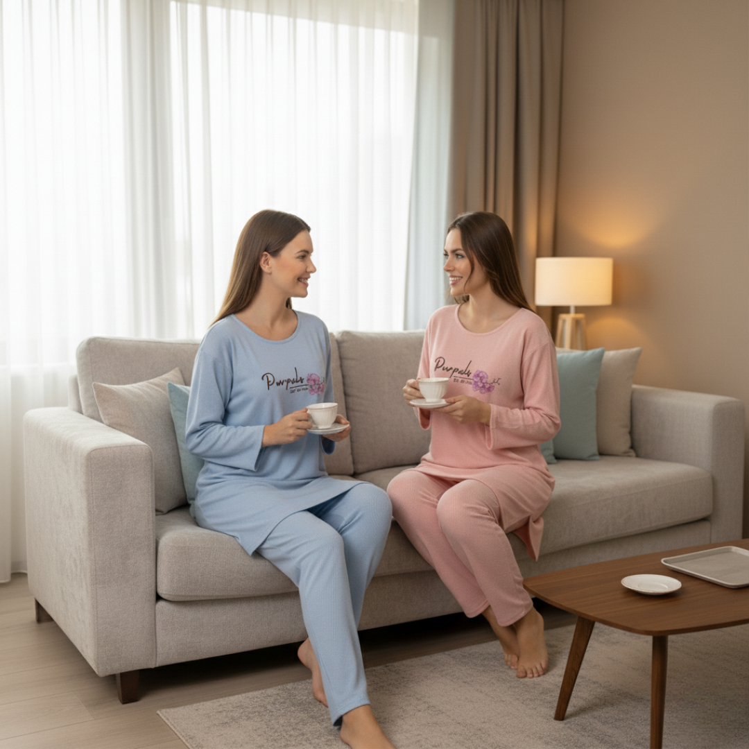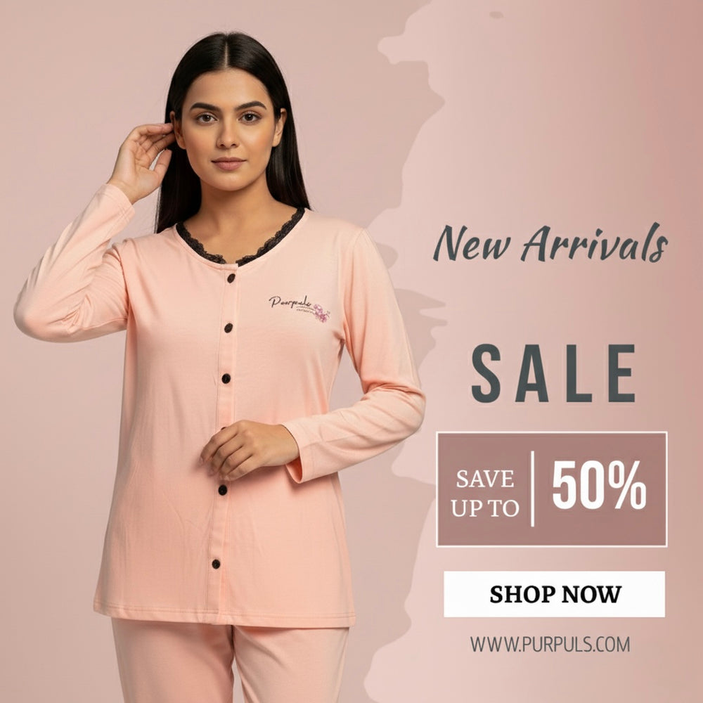 Purpuls - Soft Pink Ladies Pajama Set | Cozy Cotton Night Suit