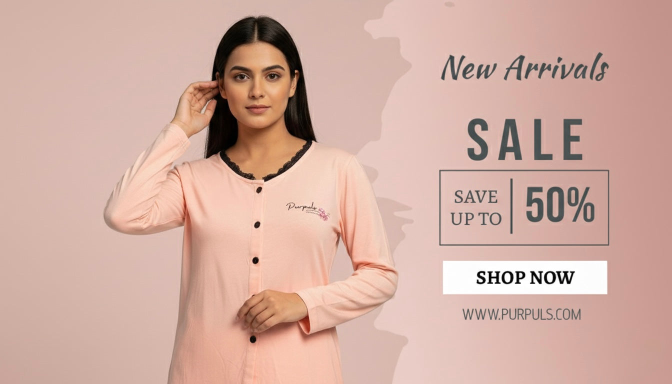 Purpuls Button-Down Night Dress β Light & Comfortable